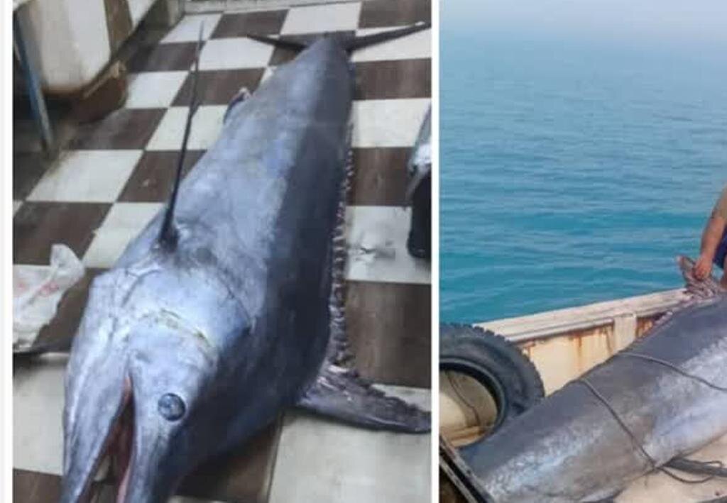 نیزه ماهی غول پیکر در تور صیادان دیلمی