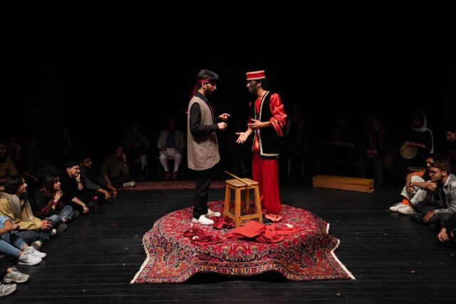 در آغاز مراسم محمد احمدی ضمن خیر مقدم به تماشاگران و تشکر از اساتید نمایش ایرانی درباره شیوه اجرایی نمایشش گفت: میخواستیم هرچه امکان دارد به اصل نمایش ایرانی نزدیک شویم به همین دلیل جایگاه تماشاگر را به سکوی اجرا نزدیک کردیم تا حس و حال تخت حوضی و حیاطهای قدیمی که در آن نمایش اجرا میشد را برای تماشاگر ایجاد کنیم.