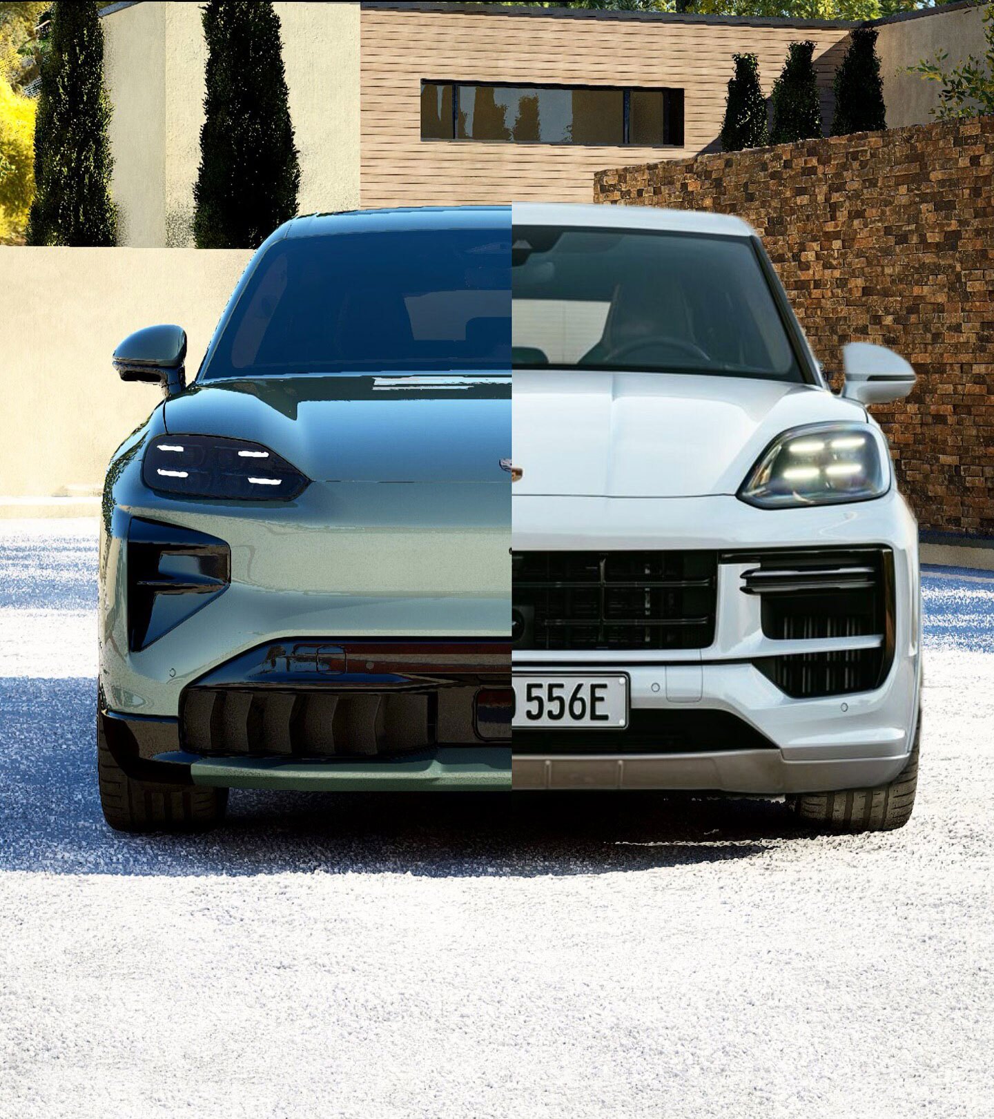 پورشه کاین ئی وی به رنگ سبز در تصاویر زیر مشخص می شود که آن را کنار کاین توربو ئی-هیبرید مشاهده می کنید